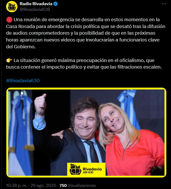 Las repercusiones en algunos medios en 𝕏 (antes Twitter), sobre la reunión de emergencia para evitar que la situación siga escalando, mientras las noticias en temas de pobreza y economía también «golpearon» a la administración de Javier Milei en su cogobierno con la hermana «el Jefe» Karina Milei, y el Clan Menem.