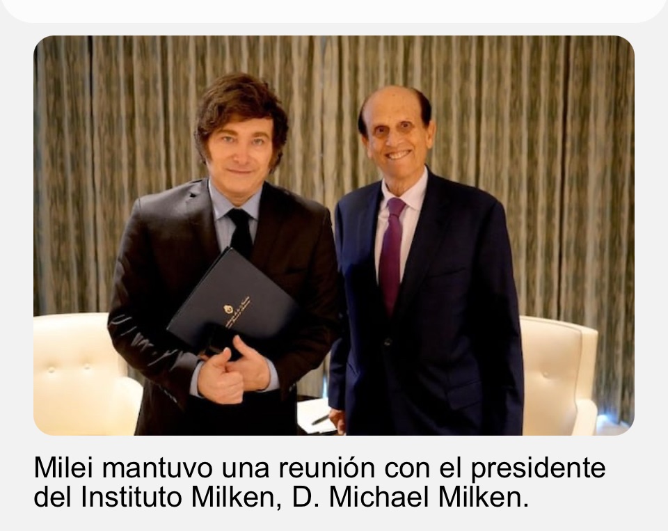 Volviendo a la historia del Instituto Milken y en referencia a lo escrito al inicio la reunión que le organizó a Javier Milei, “el rey de los bonos basura” este jueves pasado, seguimos con la publicación de La Nación del año 2006 que dice textualmente: