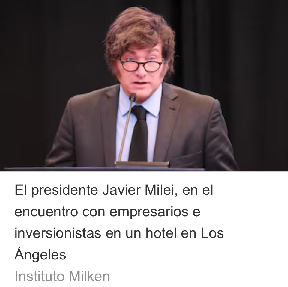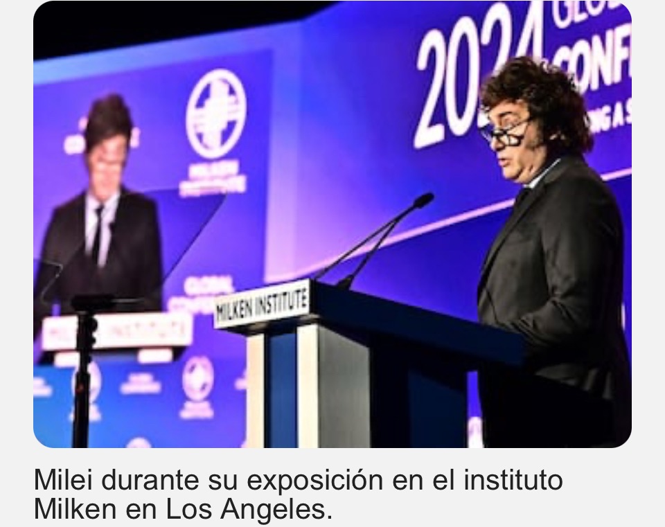“En el hotel en Beverly Hills en el que Milei expuso sobre las reformas libertarias y las oportunidades de inversión en la Argentina, si bien hubo cierta cautela por la previa electoral, primaron los elogios al mandatario, que se movió -sin salir del hotel- en uno de los terrenos en los que más cómodo se siente”.