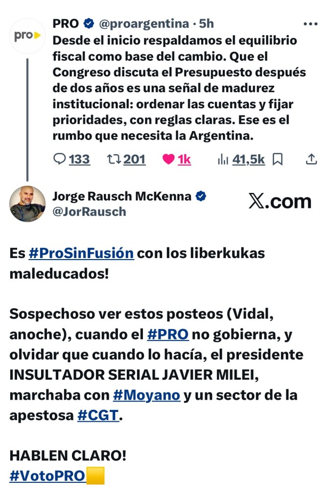 Mi respuesta automática como votante PRO fue una de las primeras, y marqué mi desconfianza expresando con ironía: “NO VOTO LIBERKUKAS. Aclaro por las dudas, por su oportuna aparición. Votaría PRO?
