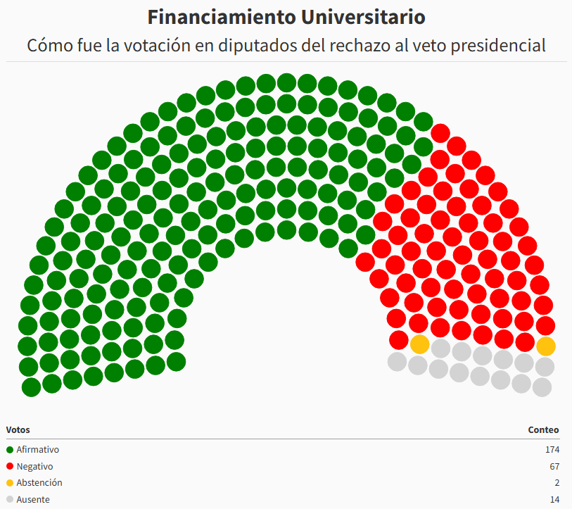 «La votación de la emergencia pediátrica fue con 181 afirmativos y 60 en contra, mientras que la segunda se cerró con 174 a favor y 67 en contra. Ahora deberá tratarlos el Senado. Además, se aprobó un emplazamiento para tratar en comisión las interpelaciones de Karina Milei y otros funcionarios por presuntas coimas en la Andis», dijo TN.